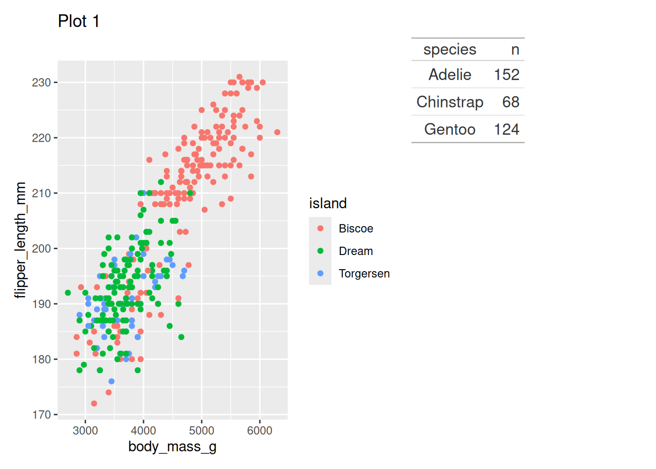 p1 <- ggplot(penguins, aes(x = body_mass_g, y = flipper_length_mm, colour = species)) +